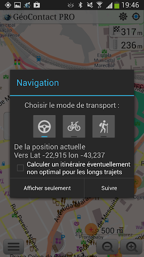 - Calcule d’itinéraires à emprunter en voiture, à vélo ou à pied, vous avec sauvegarde afin de rejouer et suivre des pistes et des tracés de routes;