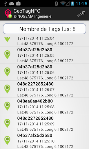 Cette application permet d'enregister dans un fichier texte l'identifiant unique du tag qui a été lu par le smartphone avec la date et l'heure ainsi que la position GPS de lecture.