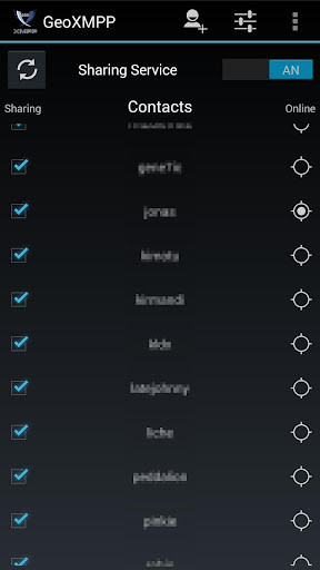 To share your location, you need to add the username of a friend to your contact list first. Then activate the checkbox on the left to enable sharing.