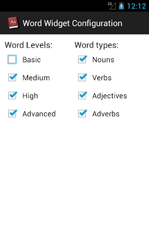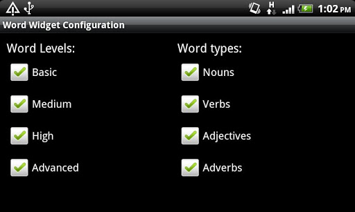 You'll find this app very useful. You can choose the level between: basic, medium, high and advanced, and the word type you want to learn: nouns, verbs, adjectives and adverbs.