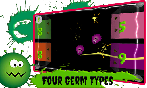 Germs! Germs are attacking us all and we couldn't stop them, until now at least. Fight back against germs using electricity. Germs is the perfect blend of a arcade game and an adventure game. In Germs you must stop the overwhelming forces of the germs by sliding them into an electric fence. But be careful, if you aren't fast enough they will take over. Thus defeating you in the never ending battle with bacteria.