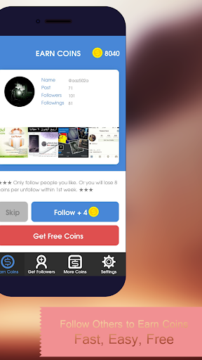 - Unfollow protection (if someone unfollows you in the 1st week you will automatically have coins refunded to your account).