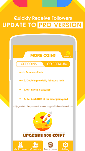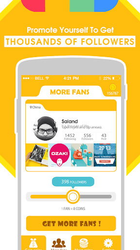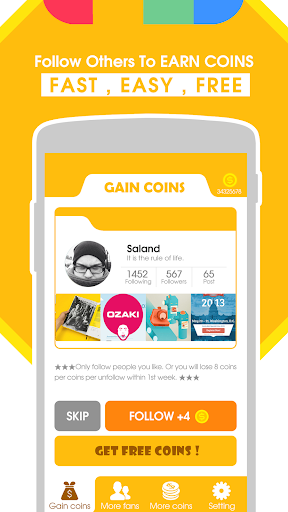 Join our vibrant community of like-minded users to promote yourself by getting more followers. Each user you follow will bring you coins. You can in turn spend your coins to put your Instagram account on display for other users to follow you. Our community is getting larger day by day and brings you great opportunities to promote your awesome Instagram account. It's a unique chance to get famous on Instagram.