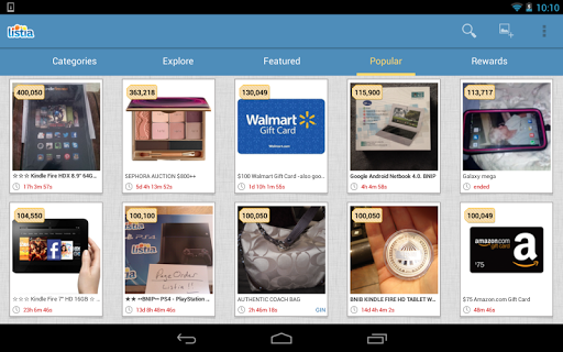 The mobile app makes listing a snap. Simply take a photo with your device, add some details about your item, and post it to Listia instantly. The Listia app will also: show you what nearby users are giving away through the geolocation feature, let you bid on things you want, and notify you any time you're outbid or an item you are watching is ending soon.