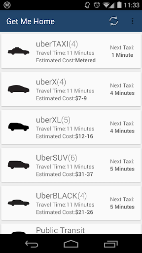 Get Me Home uses travel options around your city to determine the quickest way for you to get home. Checks availability of taxis as well as any public transit times that you need to know. Just set your home address and get your route home.