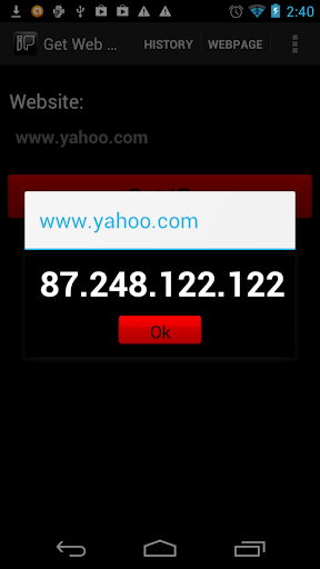 is a native Android app (for smartphones and tablets) to obtain the IP address of any website. Make sure to use a 3G/4G plan or WiFi connection.