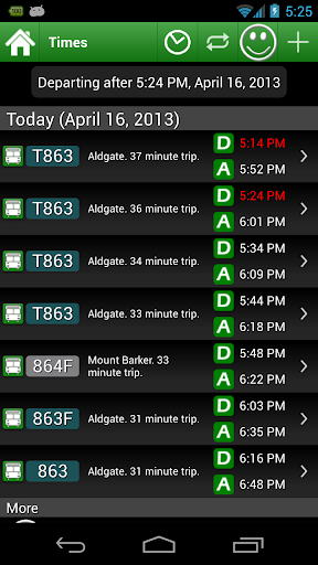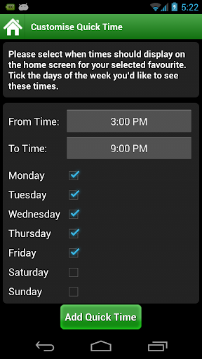- Display favourite times on the home screen at selected times of the day/week with Quick Times (e.g. services from home to work in the mornings and work to home in the evenings)