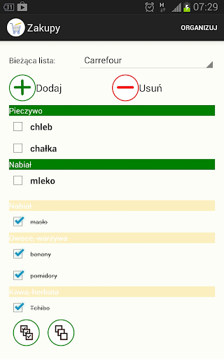 * adding / removing shopping lists - you can for example prepare a separate list to the mall, at a bazaar, a pet shop,