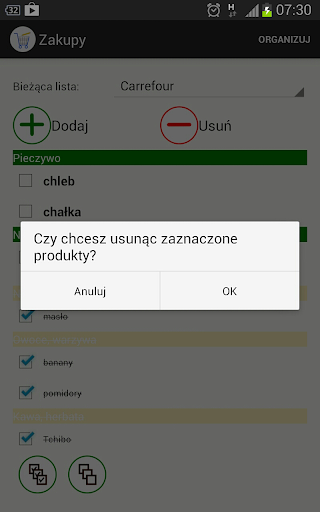 * Press "ORGANIZE" and select "Delete the shopping list"
