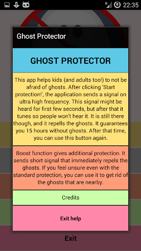 Ghost Protector Sounds free helps hids (and adults too!) to not be afraid of ghosts. It was proven that ghosts are afraid of ultra high frequency sounds. With this application you will no longer be haunted by ghosts. No need for any ghost scanners.
