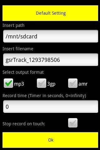 Ghost Spy Recorder records audio from MIC in three different format: MP3, 3GP, AMR.