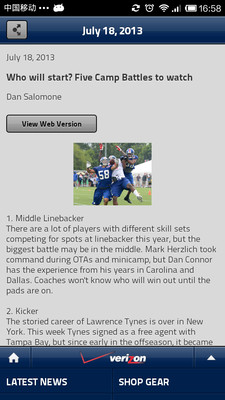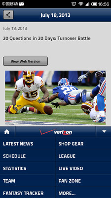 This is the official mobile app of the New York Giants. Make your Android device a unique part of your game-day experience for all Giants games. Do you want to catch breaking news of the team? See real-time statistics for every drive? Watch video-on-demand clips of press conferences and player interviews? Follow post-game blogs and pre-game previews of the matchups?