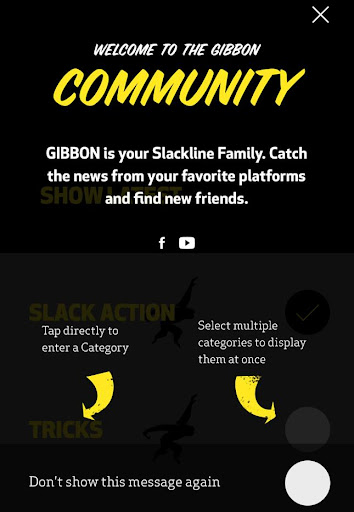 all Facebook, Twitter, Youtube channels of the GIBBON Family packed into one filter based overview. Be always up to date and don´t miss attractive offers and activities which GIBBON has to offer together with the global Slackline family. Take part in sharing content and having your posts added to this hub.