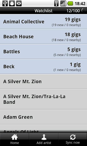 Use the watchlist to get notifications when artists play near you.