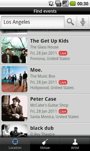 + Find events based on location, venues, and artist