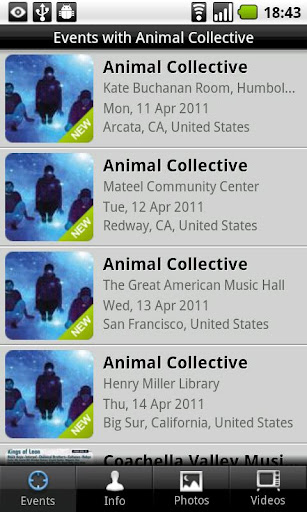 + Ticket links to BandsInTown concerts