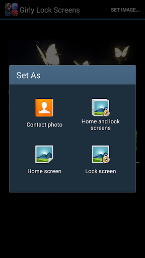 Girly Lock Screens app not only allows you to set the image as your lockscreen but your wallpaper as well! So if you have been looking for girly backgrounds this app has you covered!! We hope that you find our app easy to use, simply press any image to make it larger for a better look. Once you have found the one you like press "SET IMAGE..." at the top right of the screen.