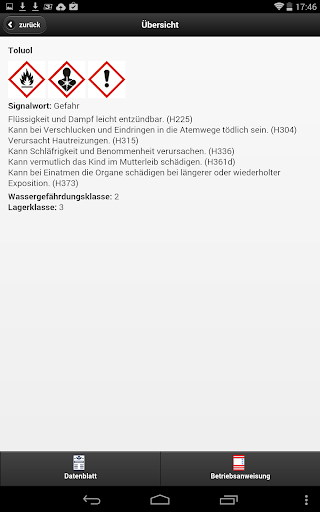 Die weiteren GisChem-Module zur interaktiven Erstellung von Betriebsanweisungen, zum Führen eines Gefahrstoffverzeichnisses sowie der GHS-Konverter und der GHS-Gemischrechner sind nur in der Desktop-Variante von GisChem erhältlich und kein Bestandteil der App.