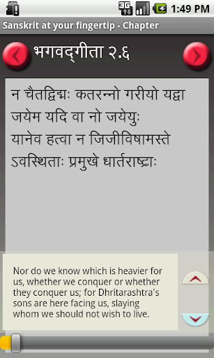 Along with the original Sanskrit text in Devanagari and an English translation, GitaReader offers you the following features for the all chapters of the Gita: