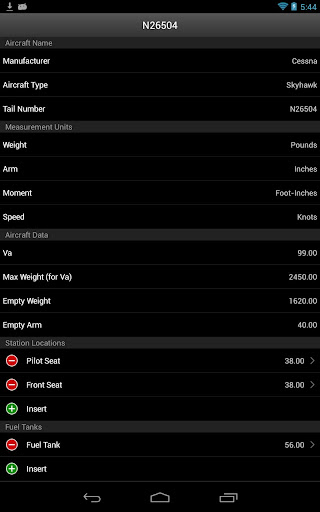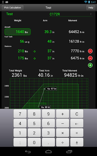 Glenview Software's E6B also contains a weight and balance calculator which can graphically represent the results of a calculation for a number of popular aircraft, including graphically representing the fuel burn-down to help you keep your plane in balance during the entire flight. For known aircraft Glenview Software will also show the Va maneuvering speed at the current weight and at the fuel empty weight so you can fly your entire trip safely.