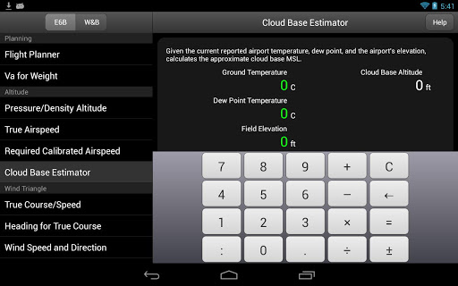 Glenview Software's E6B application performs many of the more basic flight navigation computations used by general aviation pilots. With an extensive on-line help system, Glenview Software's E6B permits you to make quick work of various navigational, weight and balance, and fuel problems, as well as performing basic arithmetic calculations and built-in unit conversion.