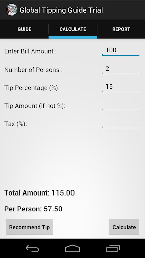Global Tipping Guide (or World Tip Guide) is currently the top leading app in providing tipping information to make your next trip a pleasant one. It also provides a fully featured tip calculator, and an expense report for you to use during your next trips.