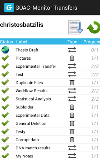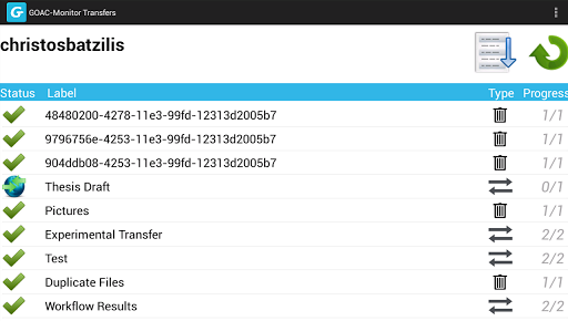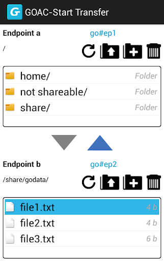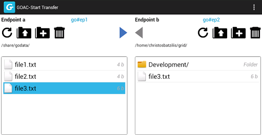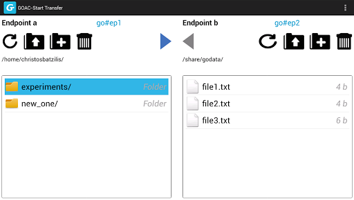 Globus Online Android Client allows you to move your data between endpoints on the Grid, in an easy secure and efficient way. It enables you to monitor these transfers and organize them through a multitude of Settings. GOAC makes use of the Globus Online cloud-hosted service.