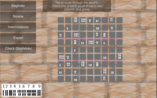 Adapted from tablets recently unearthed from a secret dig site in northern Egypt, in a chamber covered in steamy poetry, GlyphDoku may be the oldest known variant of the popular puzzle game. Perfect for the puzzle or Sudoku enthusiast who is looking for something a little different.