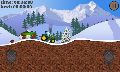 Don't wait! Press gas, adjust speed and drive your tractor carefully on the bumpy road not to lose the load of the trailer. You will find steep hills and bridges.