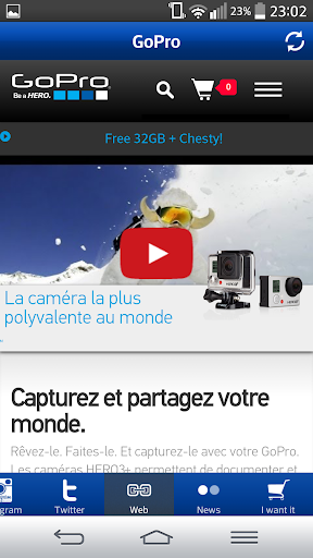 Voici une application qui vous permet d'avoir toutes les news concernant l'actualité gopro: facebook, twitter, instagram, vidéos, news, site web officiel...