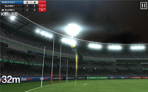 GoalKicker features realistic ball physics, HD Graphics, real crowd sounds and Google Play Services integration to enable you to challenge your friends. It's the closest thing to being at an AFL match while still in the comfort of your sofa.