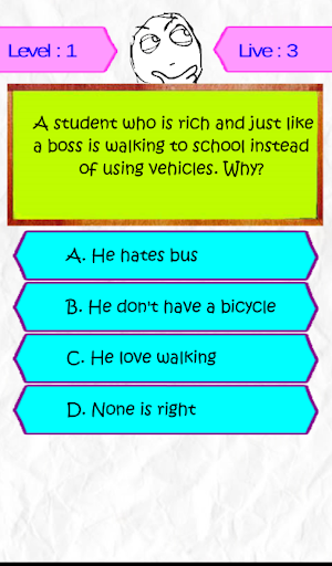 Each question has 4 different answer and only one of them is correct. You have to choose the correct answer to move on. The goal is to get as many correct answer as you can. And then just LOL.