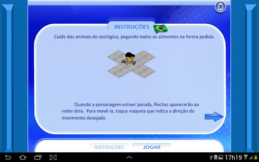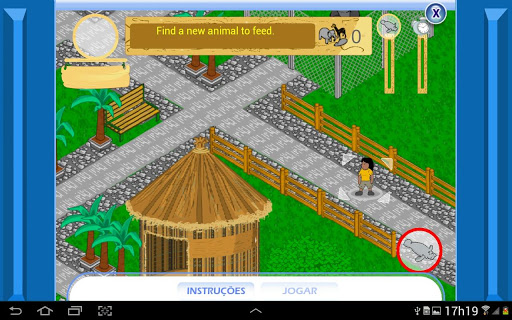 O aplicativo explora o tempo verbal “going to” em Língua Inglesa. Para ajudar a personagem a alimentar todos os animais do zoológico, o aluno tem de localizar os bichos que estão famintos. Ao encontrar cada um deles, uma frase deve ser completada com os sacos corretos de ração; caso contrário, eles não serão alimentados.