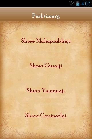• From "Pushtimarg", you can read about Shree Mahaprabhuji, Shree Gusaiji, Shree Yamunaji and Shree Gopinathji.