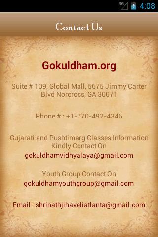 • From "Contact us", you can visit Gokuldham website or you can send email form the app.