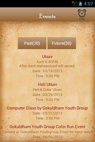 • From "Events", you can see future events and past events for Gokuldham-Atlanta and you can also turn on and off notification of future events.
