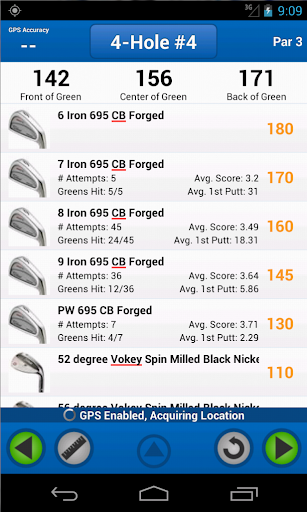 - Equipment tracking. Add details for each club in your bag, record the distance you hit each club, and then reference this information while playing. You can also record the drive and approach clubs used on every hole.