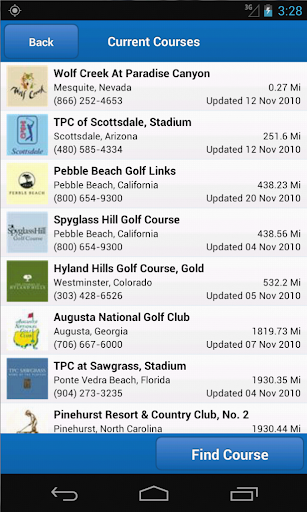 Over 30,000 golf courses are currently available for download and more are being added every day (visit http://www.golffrontier.com/GPSCourseMaps.aspx for a list of currently mapped courses). If your course is not already listed in the directory, then you can either create a map for the course online at http://www.golffrontier.com using our powerful online editing tools, or send us an email and we will map it for you. Unlike other apps, there is never any additional charge to download courses.