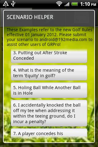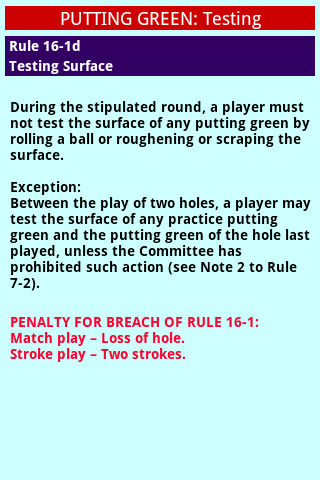 Golf Rules Lite provides a reference to the rules of golf. If you would like a complete reference, please install Golf Rules Pro.