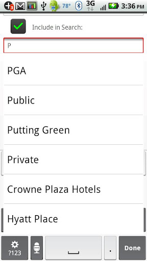 Types of golf facilities are pre-loaded to assist you when using the optional name search.