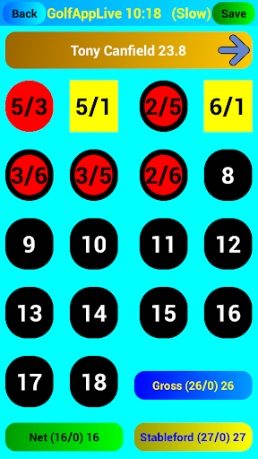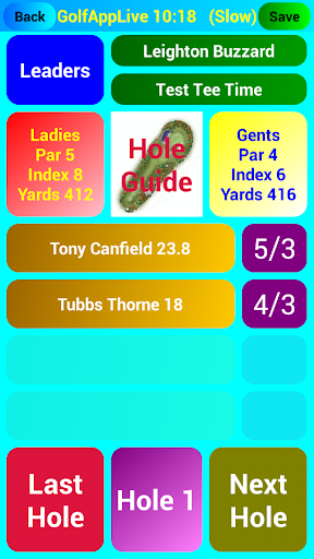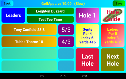 This application is designed to capture players' scores around the course on any smart phone or tablet so that a "live" leaderboard can be shown back in the clubhouse.