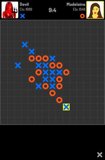 Five In a Row also known as Gomoku, Tic Tac Toe with high quality artificial ingeligences and a lot of extra functions. It is the classic strategy game that develops logical thinking and concentration in an entertaining form.