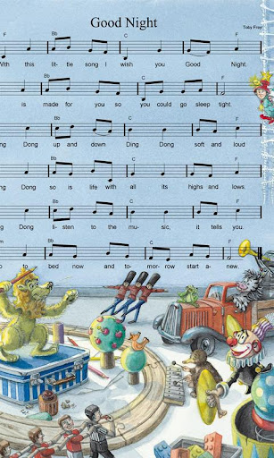 27 Sweetest Lullabies and Bedtime Songs with fabulous illustrations, musical notes, lyrics and chords, featuring attractive sounds ("touch the figure" surprises). Original Songs and Playback.