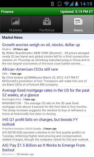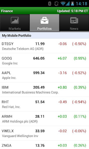 Finance for Android brings you streaming real-time quotes in this stock quote and portfolio application. It synchronizes with your Google Finance portfolios, allows quick access to charts and lets you view the latest market and company news.