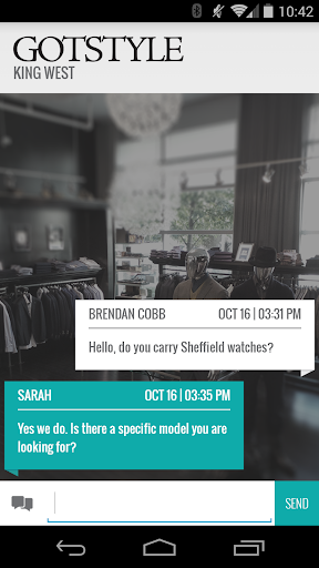 • Use the GOTSTYLE™ App to chat directly and interact with our stylist at any of our stores. Answers to your style questions or stock availability are just a tap away.