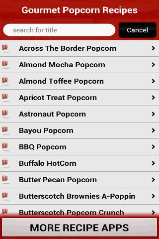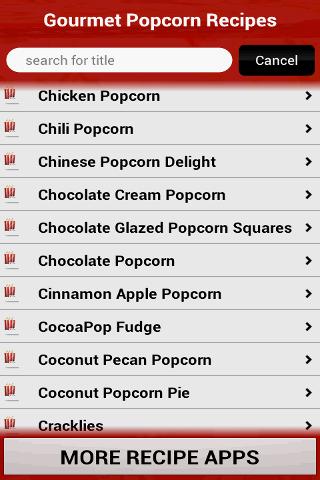 This fabulous App contains over 85+ recipes for creating gourmet popcorn. Check out the recipes listed below: