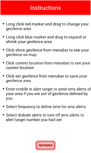 bout this app : This is a Phone tracker or Location tracker for Tracking the movement of your phone or device. Install this App to your target phone to track its location. You could monitor or track the target phone with a browser all you need to do is to remember the target phone ID, which could easily be sent from the application. Alternative usage could be to place a phone into your car to track its location. Help keep track of your kids or aged parents. Once installed the app and set area with alert target. your phone number in app and app will run hidden in the background. You will get exact location of targeted person via SMS if your target people go out of the set boundaries in MAP. To stop the tracking just uninstall the app.