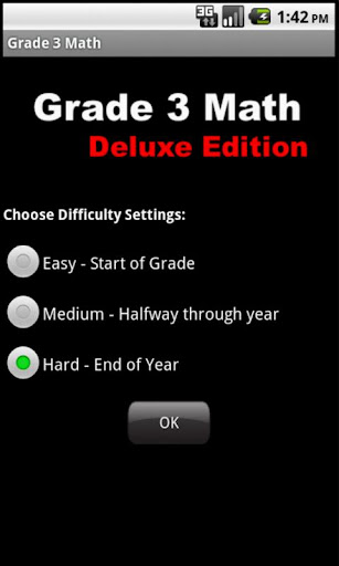 This App provides math drills specifically designed for Grade 3 students, organized into three difficulty levels.