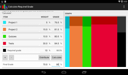 - The "calculate required grade" mode allows you to compute the grade you need on one item to achieve a desired final grade