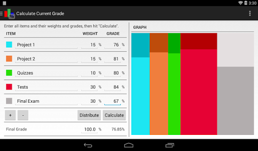 - The "calculate current grade" mode allows you to compute your current grade based on individual items